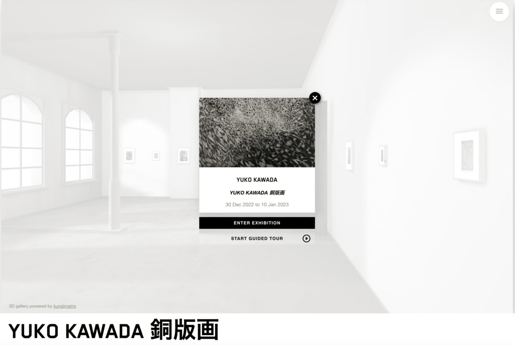 YUKO KAWADA 銅版画 川田祐子は、2019年にイタリアのフィレンツエに短期で2度渡り、版画学校&工房イルビゾンテにてエッチング、アクアチント、メゾチント技法を習得しました。現地にて制作した銅版画を中心に、その後銅版画プレス機を軽井沢アトリエに備えて自制作した作品も加えてご紹介する展示です。 期間:2022年12月30〜2024年2月29日 *終了致しました。企画・作成:川田 祐子提供:KUNSTMATRIXID: 11177758 YUKO KAWADA -on paper works- in 20222022年に制作した未発表ドローイング作品35点の仮想空間個展 期間:2022年12月20日〜2024年2月29日 *終了致しました。企画・作成:川田 祐子提供:KUNSTMATRIXID: 11174546 YUKO KAWADA -oil paintings- 2019-2022画家川田祐子の2019年から2022年までに制作した未発表油彩画小品38点を振り返る仮想空間個展 期間:2022年12月20日〜2024年2月29日 *終了致しました。企画・作成:川田 祐子提供:KUNSTMATRIXID: 11143216