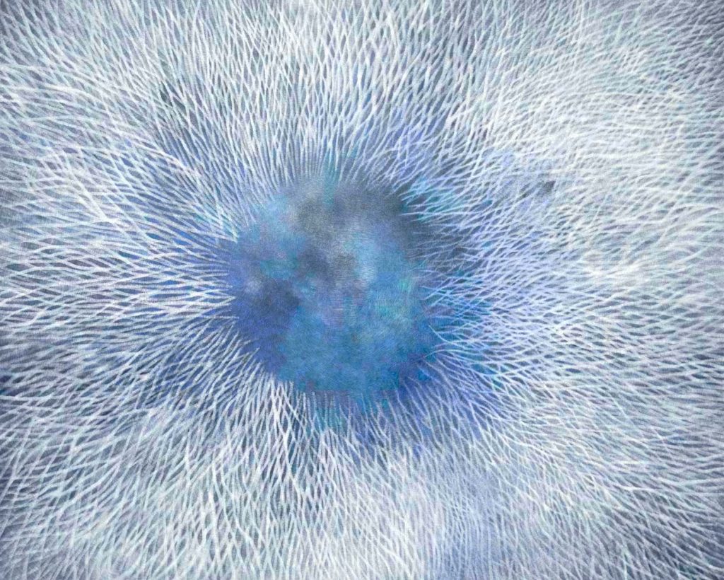 作品中央の青い空が、私には鳥の目に見えたのです。